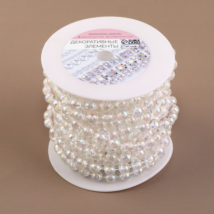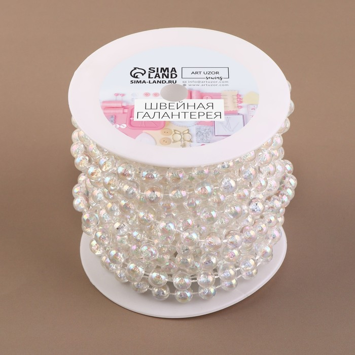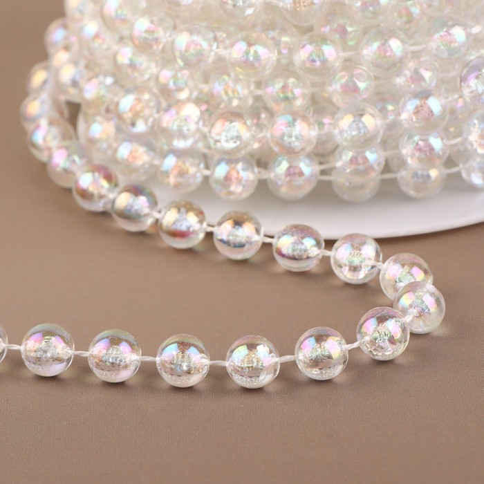 Бусы на нитях, с голографией, круглые, 8 мм, 9 ± 1 м, цвет прозрачный