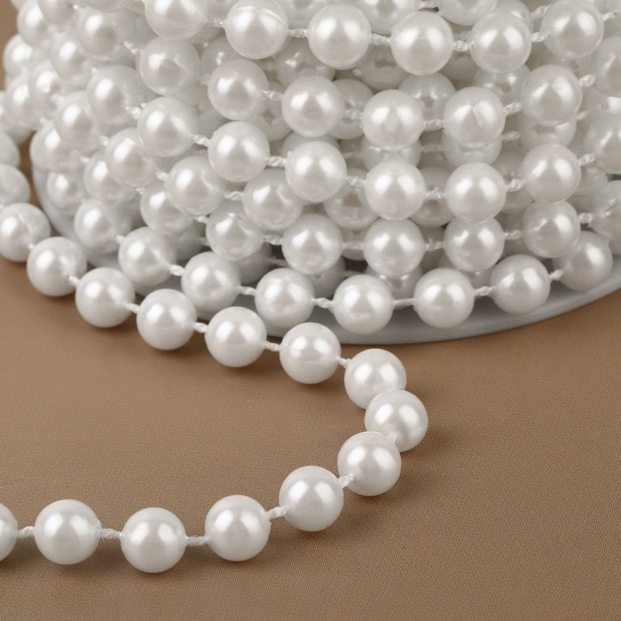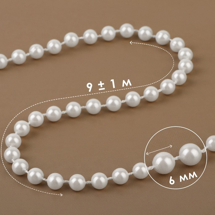 Жемчуг на нитях, круглый, 6 мм, 9 ± 1 м, цвет белый