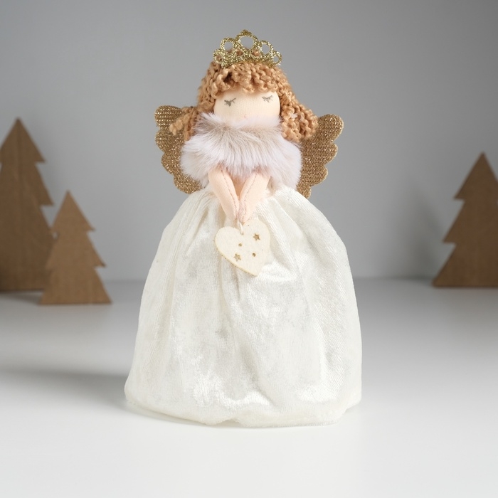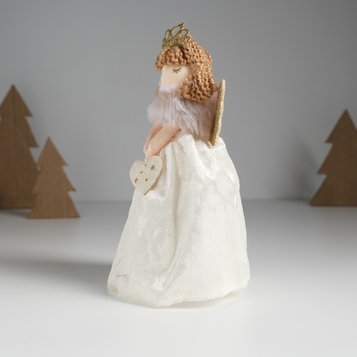 Кукла интерьерная "Принцесса-ангел в белом бархатном платье с сердечком" 7,5х8х17,5 см