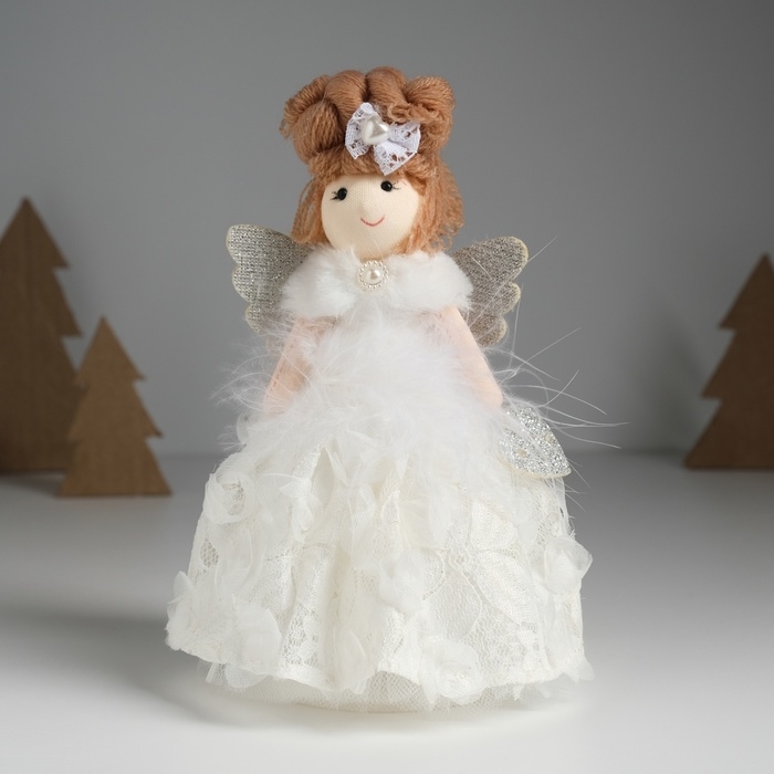Кукла интерьерная "Ангелочек в белом цветочном платье" 8х7х16,5 см