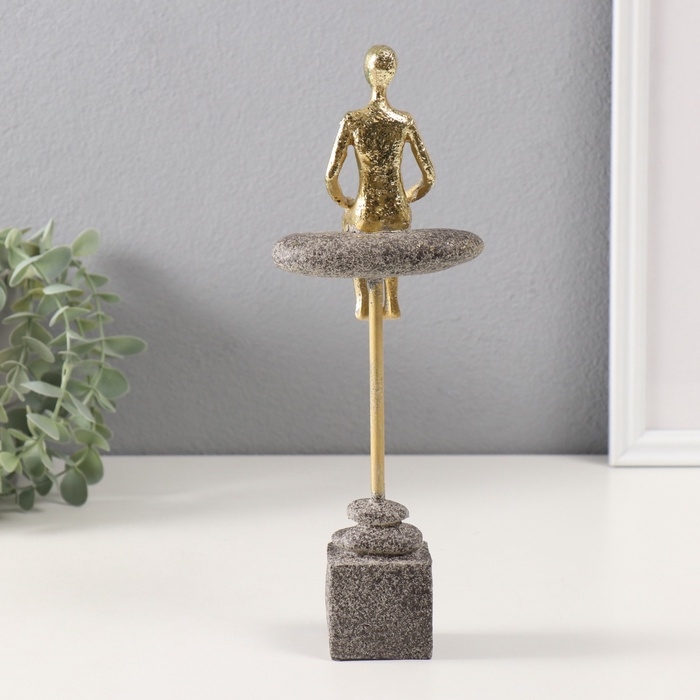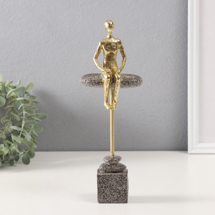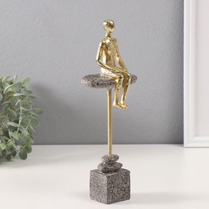 Сувенир полистоун "Человек сидит на краю камня" золото 4,2х10х27,5 см