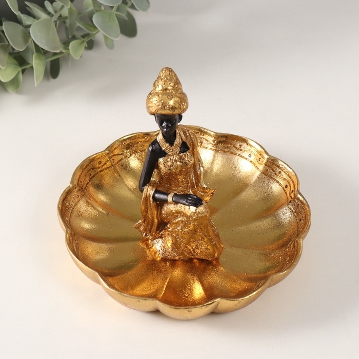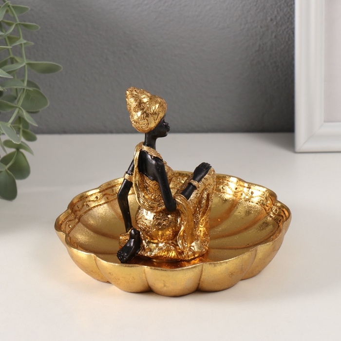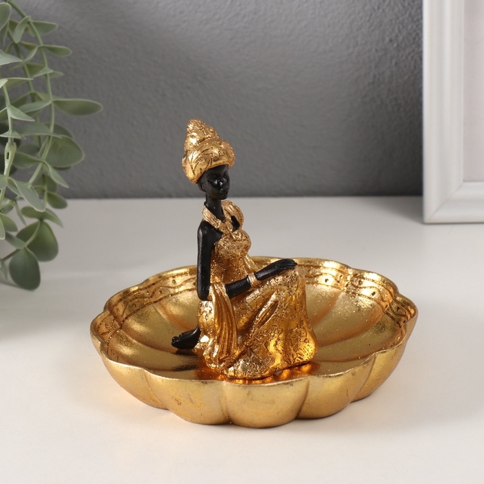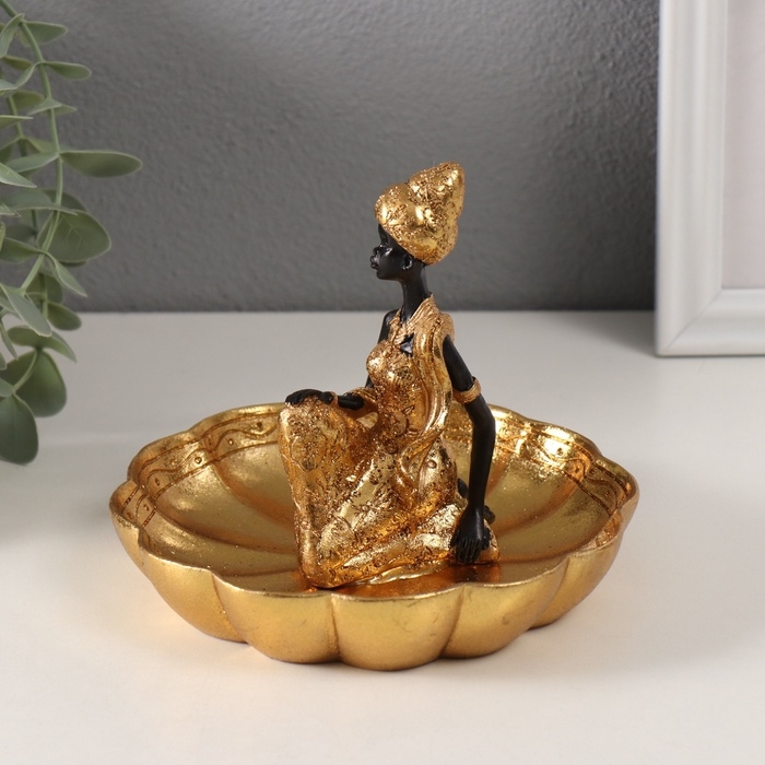 Сувенир полистоун подставка "Африканка в тюрбане, на цветке" золото 14х15х12,5 см МИКС