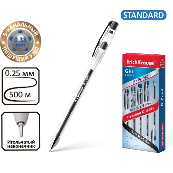Ручка гелевая ErichKrause G-Point, узел 0.38 мм, чернила чёрные, длина линии письма 500 метров