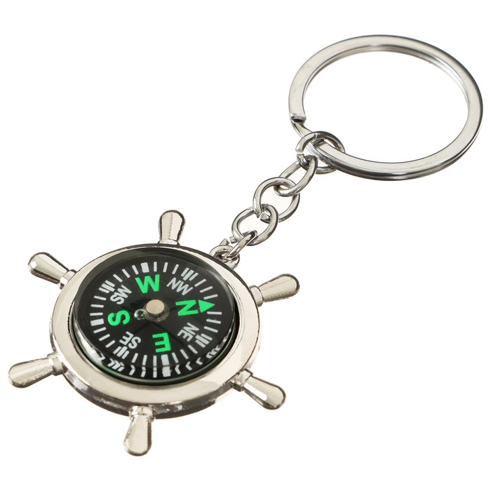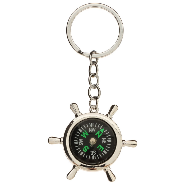 Сувенирный компас-брелок — это стильная вещь, которая подчеркнёт индивидуальность хозяина. Дизайн в виде штурвала с изображением компаса и прочный металлический каркас, безусловно, привлекут внимание и дополнят ваш образ. За счёт небольших габаритов, украшение поместится где угодно, будь то карман или сумка. С таким аксессуаром вы никогда не потеряете ключи.