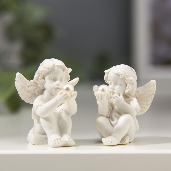 Сувенир полистоун "Ангелочек рассматривает жемчужину" МИКС 3,5х2,5х2,8 см