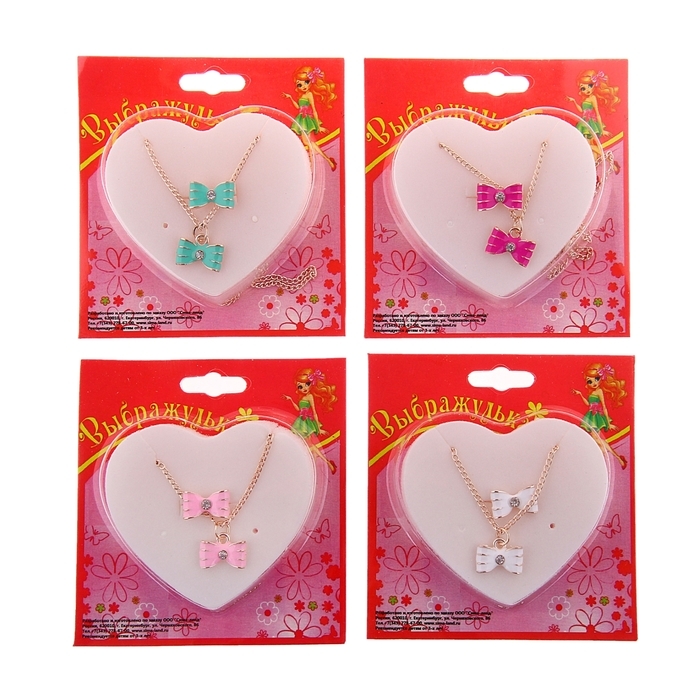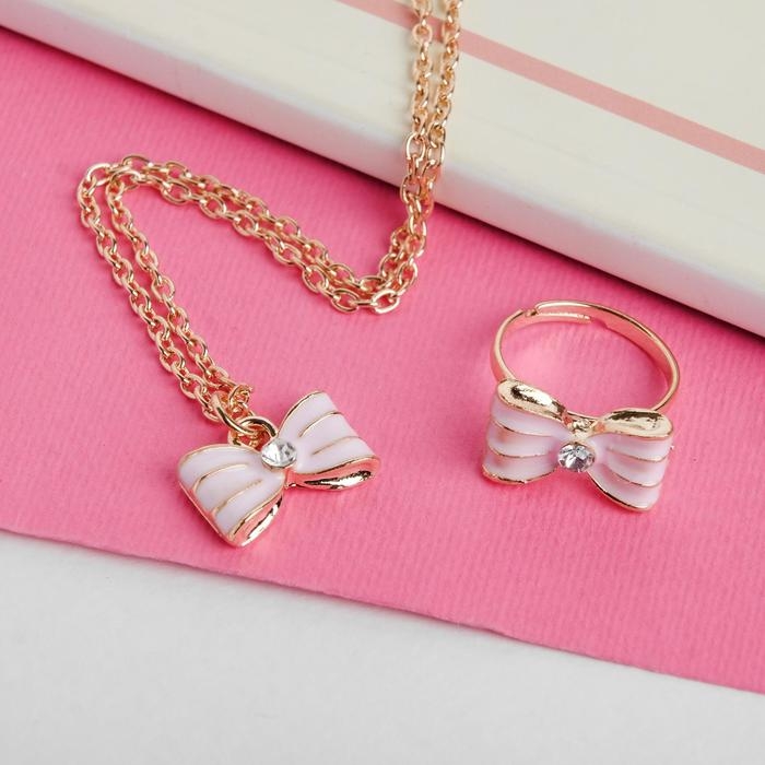 Набор детский «Выбражулька» 2 предмета: кулон, кольцо, бантик, цвет розовый