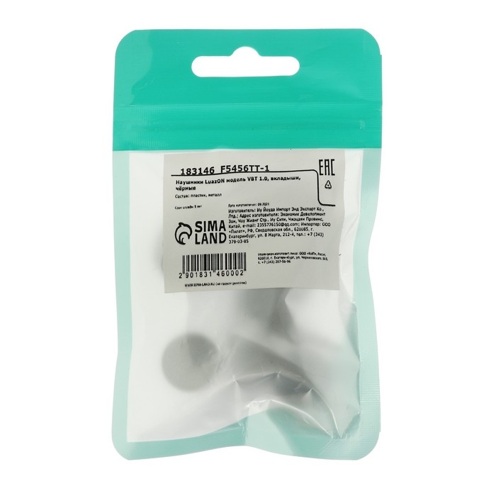 Наушники Luazon VBT 1.0, вкладыши, чёрные