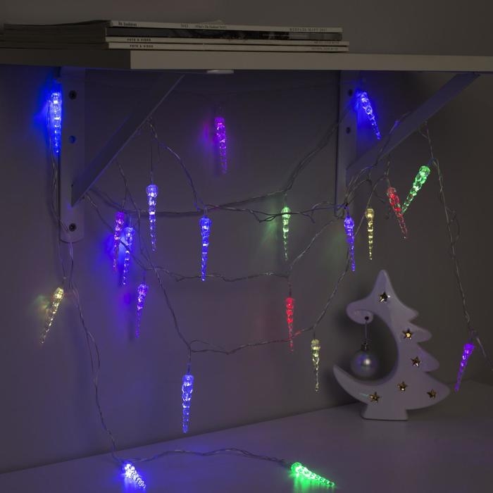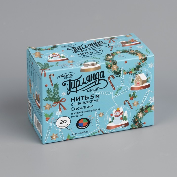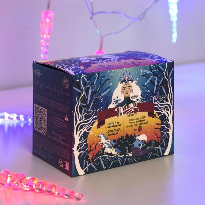 Гирлянда «Нить» 5 м с насадками «Сосульки тающие», IP20, прозрачная нить, 20 LED, свечение мульти (RG/RB), мигание, 220 В