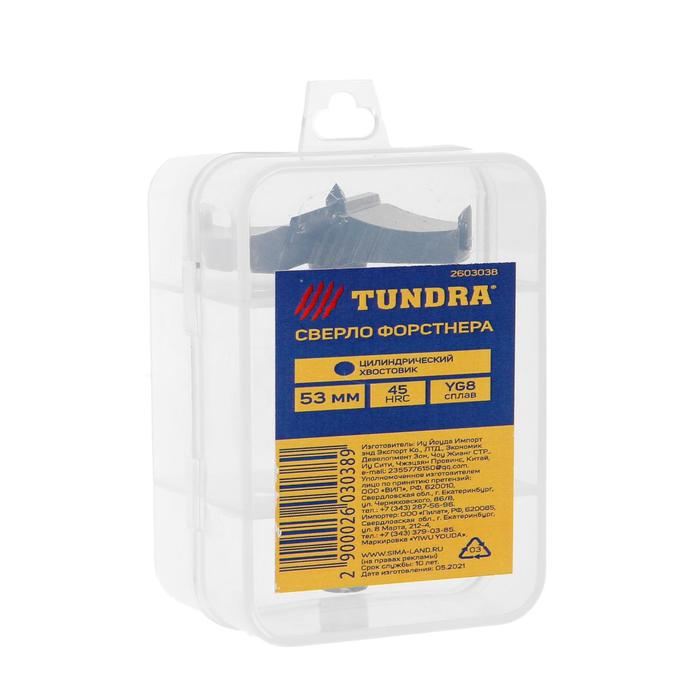 Сверло Форстнера ТУНДРА, твердосплавные пластины, цилиндрический хвостовик, 53 мм