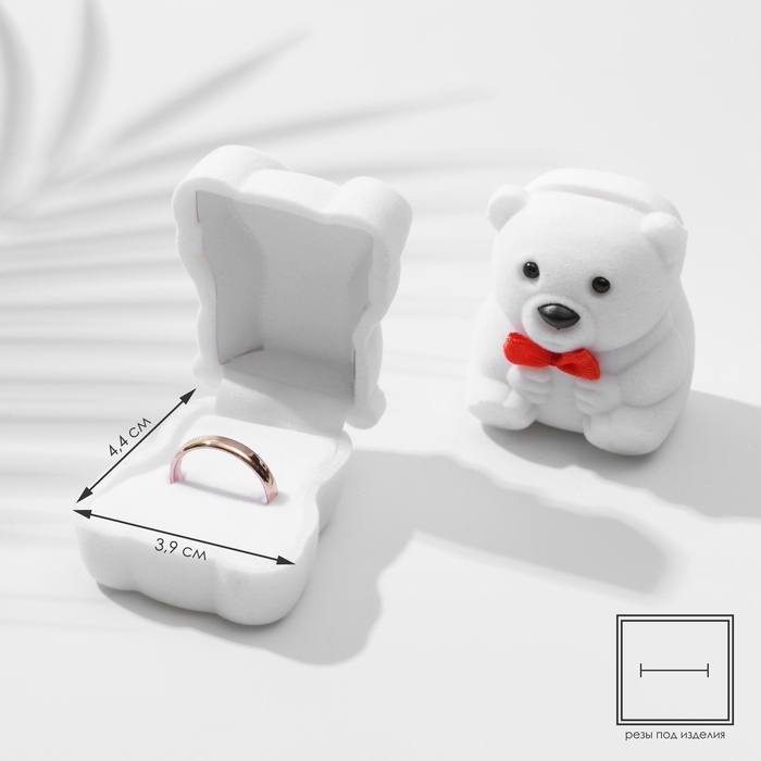 Футляр бархатный под кольцо «Мишка» 4,5×5×3,5, цвет белый