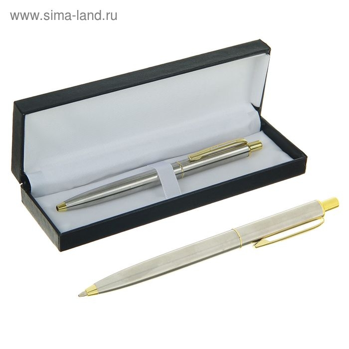 Ручка подарочная Calligrata «Джокер», шариковая, автоматическая, в футляре кожзам, серебристый с золотым
