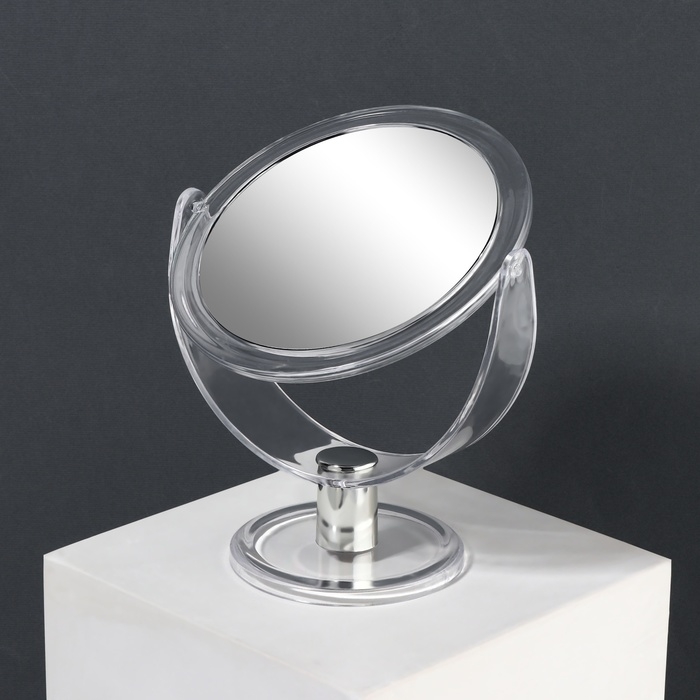 Зеркало настольное «Круг», двустороннее, с увеличением, d зеркальной поверхности 10,5 см, цвет прозрачный