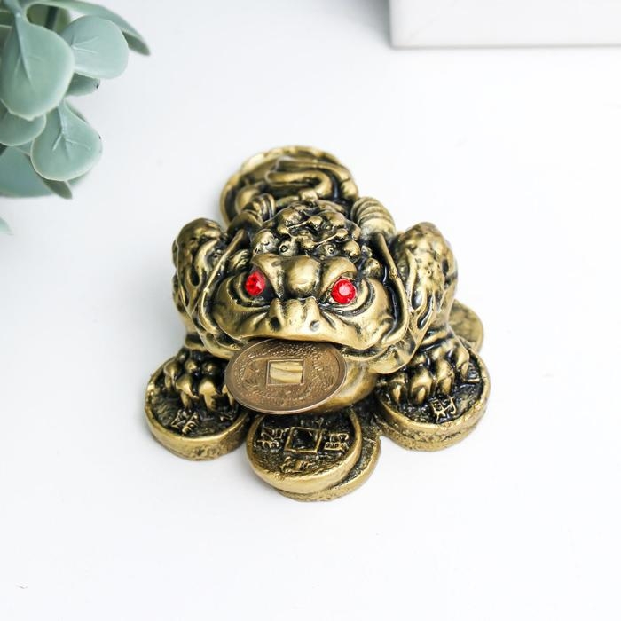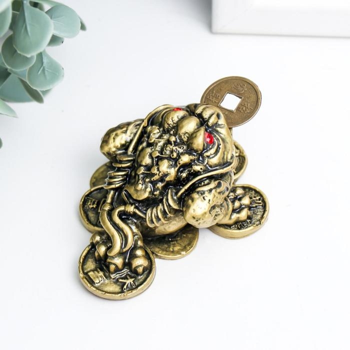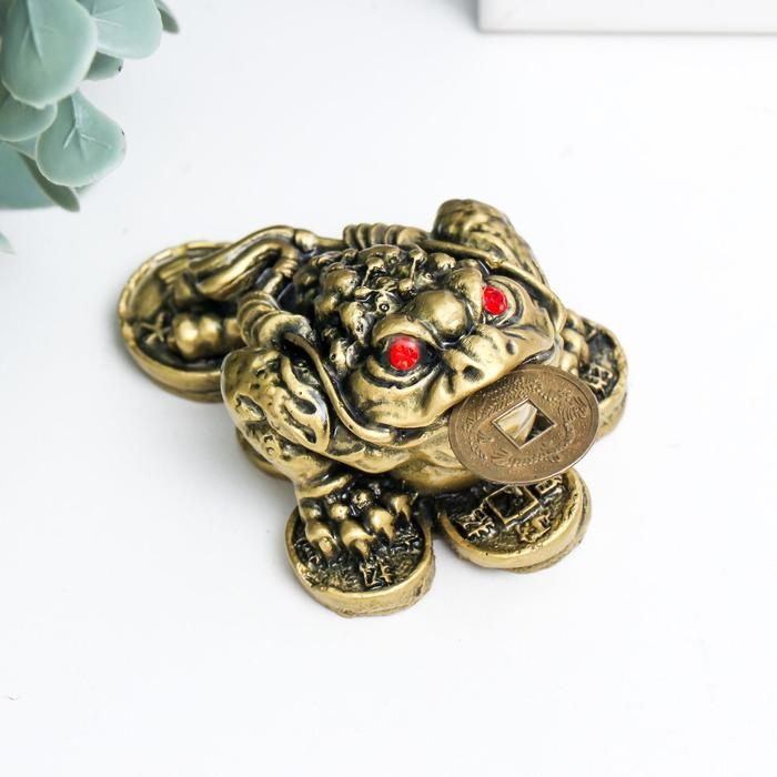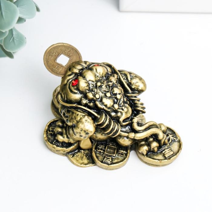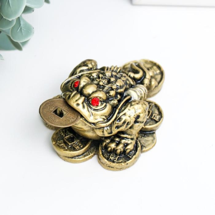 Нэцкэ бронза "Жаба на монетах" 4 х 7 х 5,5 см