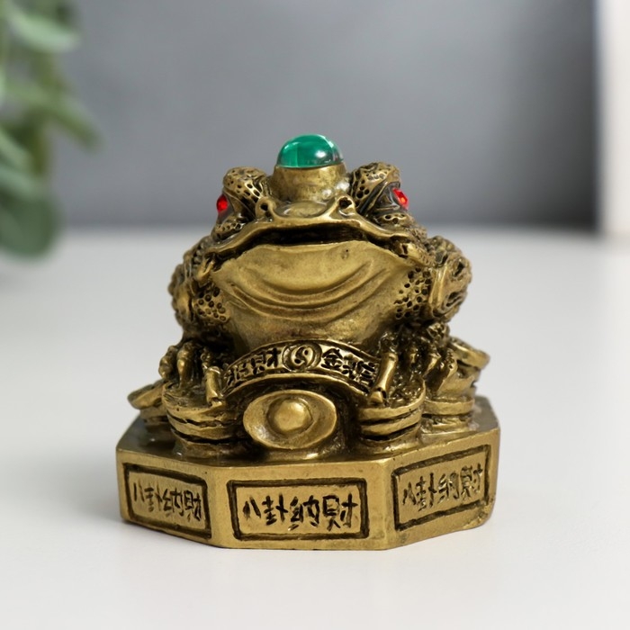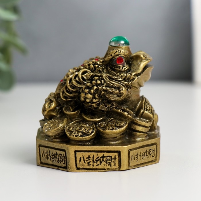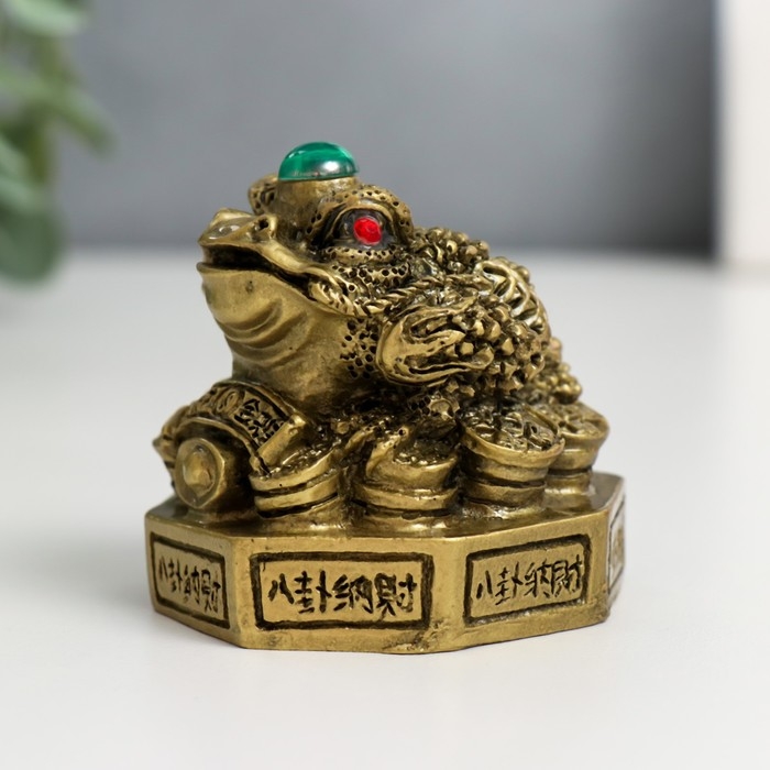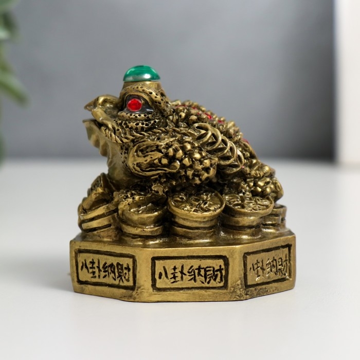 Нэцке полистоун бронза "Жаба на Ба-гуа" 5,8х5,8х6,6 см
