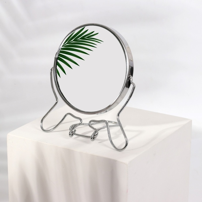 Зеркало настольное - подвесное «Круг», двустороннее, с увеличением, d зеркальной поверхности 16 см, цвет серебристый