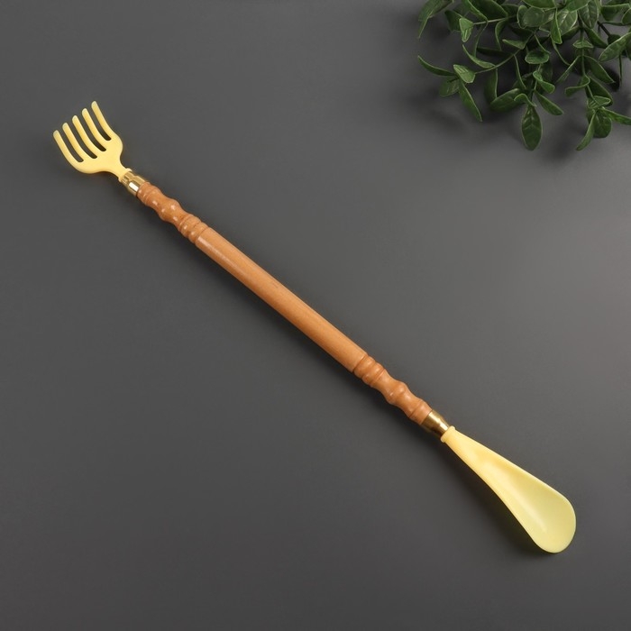Чесалка с ложкой для обуви — полезный инструмент для домашнего использования. Зубчики массажёра ускоряют кровообращение, тонизируют кожу, снимают спазмы, напряжение и усталость. Расслабляющий эффект дополняет функциональность изделия 2 в 1. Длинная ручка делает удобным использование как чесалки, так и ложки.
