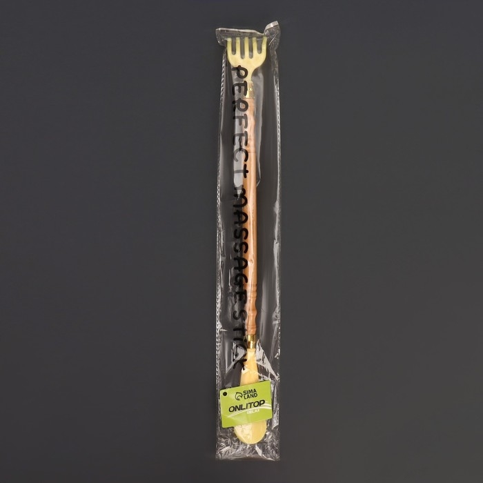 Массажёр - чесалка, универсальный, с ложкой, деревянный, 47 × 4 × 3 см, цвет жёлтый
