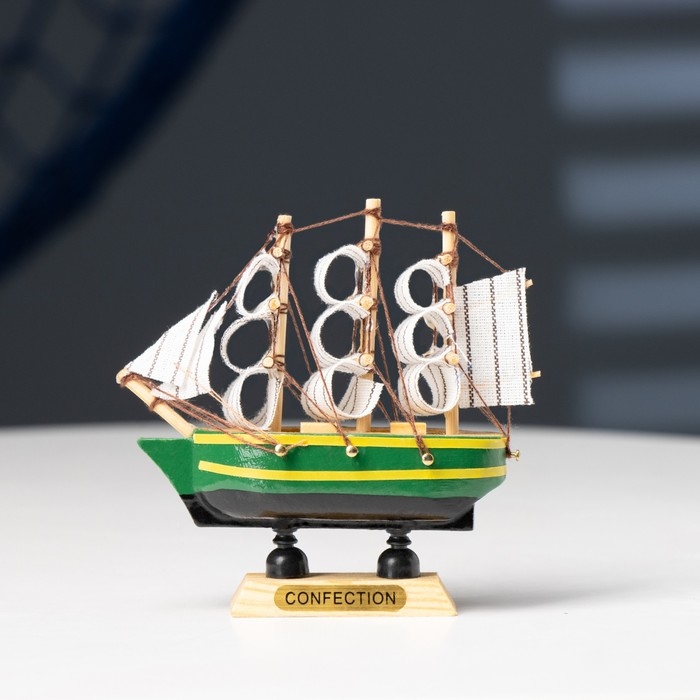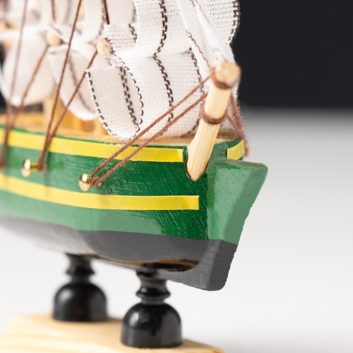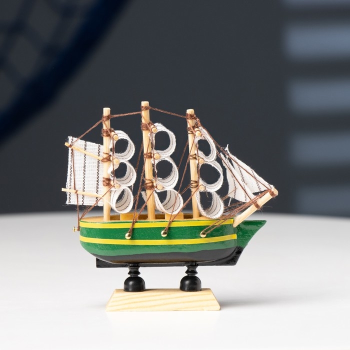 Корабль сувенирный малый «Аркхем», борта зелёные с жёлтой полосой, паруса белые, 3×10×10 см
