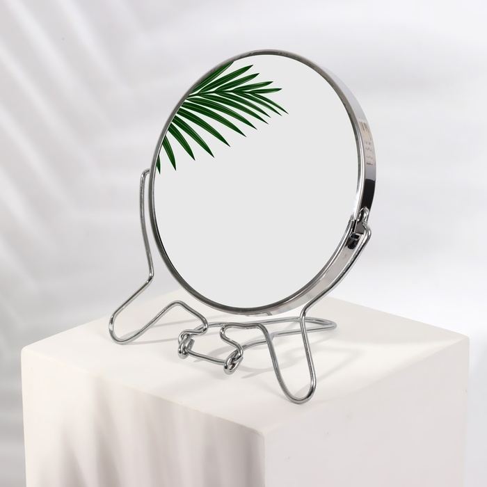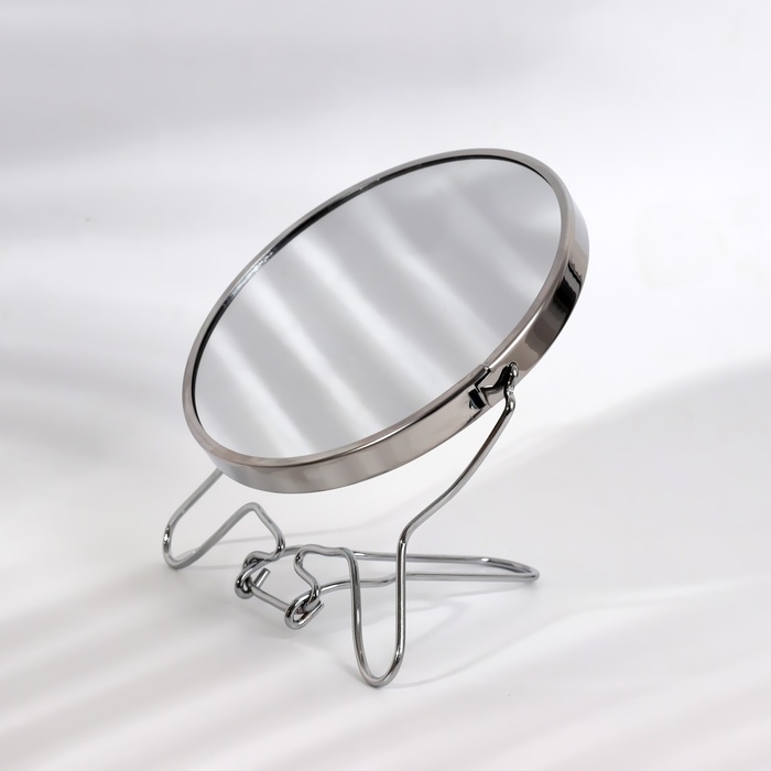 Зеркало настольное - подвесное «Круг», двустороннее, с увеличением, d зеркальной поверхности 16 см, цвет серебристый