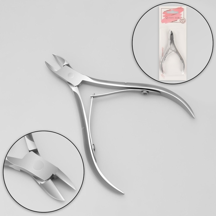Кусачки маникюрные для кутикулы, двойная пружина, 9,5 см, длина лезвия - 10 мм, на блистере, цвет серебристый