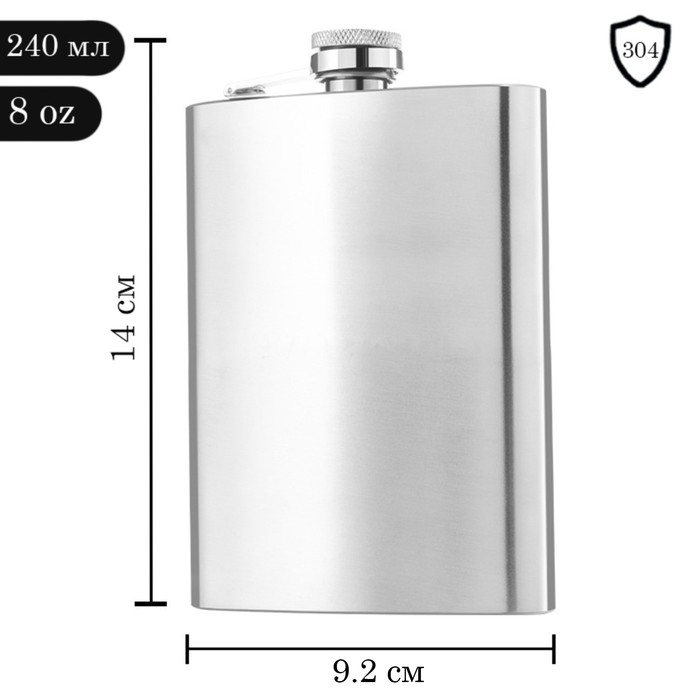 Фляжка для алкоголя и воды, 240 мл, нержавеющая сталь, подарочная, армейская, 8 oz — модель на все случаи жизни. Станьте обладателем этого полезного предмета и верного спутника во всех походах и поездках.