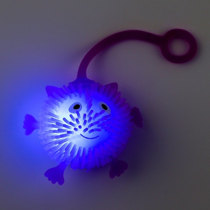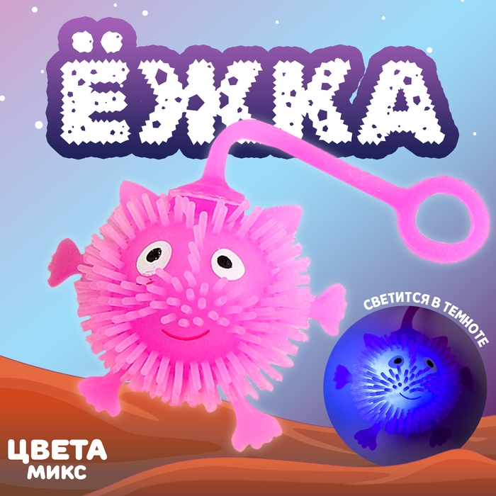 У озорного пушистика есть резиновая верёвочка, за которую удобно держать во время игры. А внутри такого ёжика находится шарик, он светится и мигает при ударе, что очень зрелищно выглядит в темноте. Эта детская игрушка завладеет вниманием малыша — в неё невозможно не влюбиться!