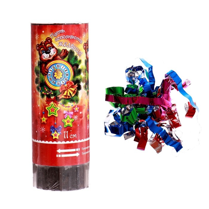 Новогодняя хлопушка пружинная «Пусть исполняются желания!», на новый год создана специально для тех, кто привык ярко встречать этот веселый праздник, или для тех, кто хочет разнообразить новогодний вечер. Хлопушка приводится в действие при повороте специально обозначенной части за счет сжатого воздуха и абсолютно безопасна в эксплуатации. Подходит для применения в помещении и на улице.