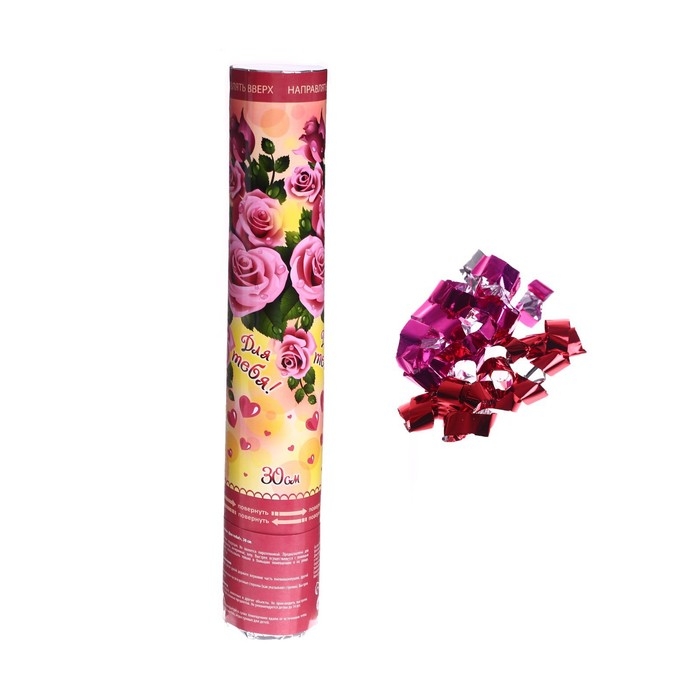 Пневмохлопушка «Для тебя!», лепестки роз, розовые, 30 см
