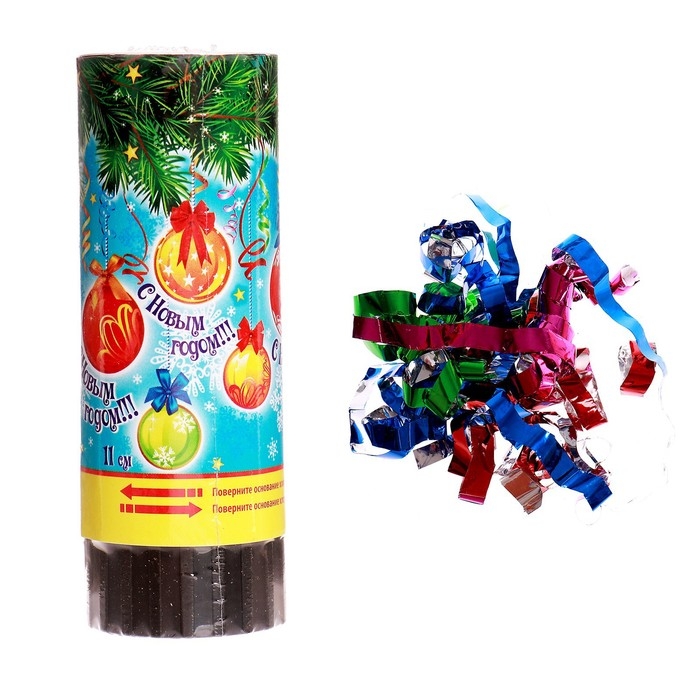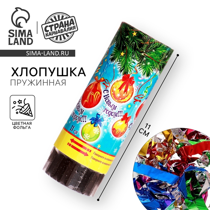 Новогодняя хлопушка пружинная «С Новым годом!», 11 см, конфетти, фольга-серпантин создана специально для тех, кто привык ярко встречать этот веселый праздник, или для тех, кто хочет разнообразить новогодний вечер. Хлопушка приводится в действие при повороте специально обозначенной части за счет сжатого воздуха и абсолютно безопасна в эксплуатации. Подходит для применения в помещении и на улице.
