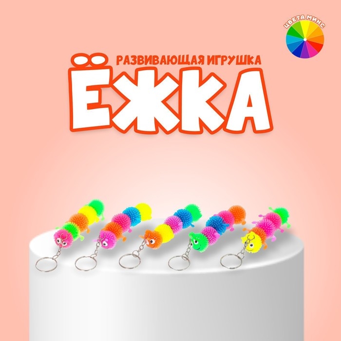 Мяч детский резиновый ёжка «Сороконожка», резиновый, на брелоке, цвета МИКС