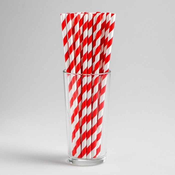 Трубочка для коктейля «Спираль», набор 12 шт., цвет красно-белый