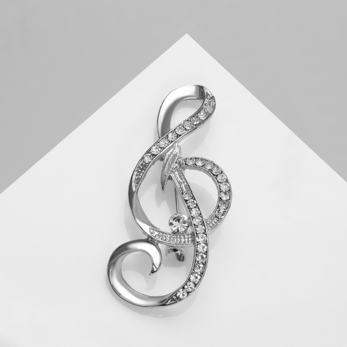 Брошь «Скрипичный ключ» цвет белый в серебре