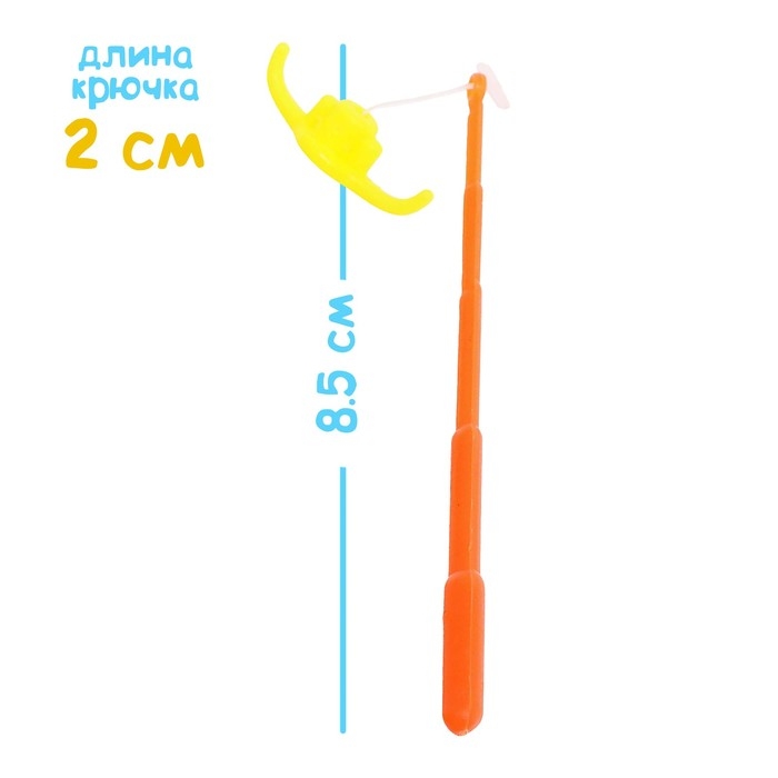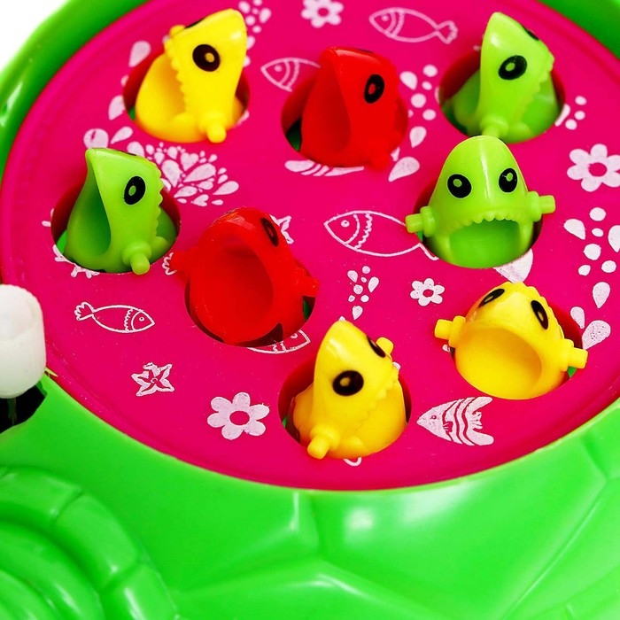 В комплект входит магнитная удочка, которая позволит деткам соревноваться друг с другом. Кто первым сумеет выловить всех обитателей «водоёма», тот одержит победу!