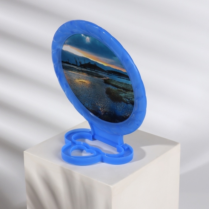 Зеркало настольное «COLOURS», d зеркальной поверхности 16 см, цвет голубой