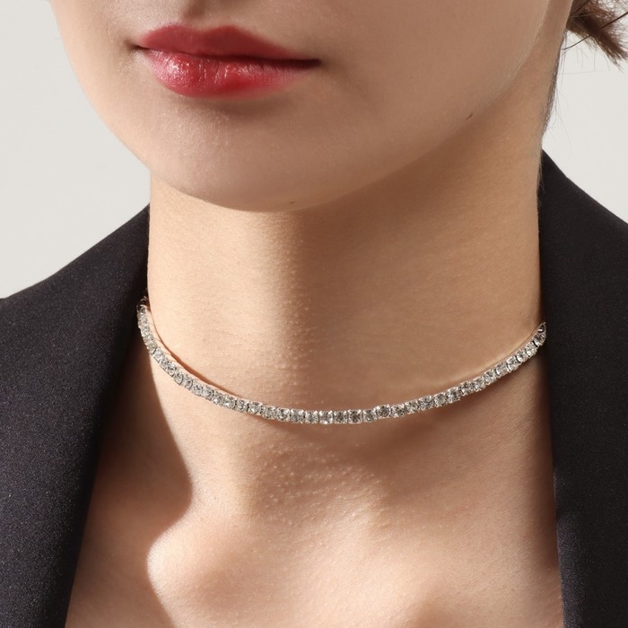 Колье «Лёд», 1 ряд, цвет белый в серебре, 35 см