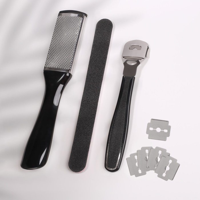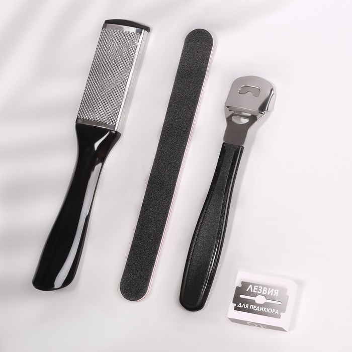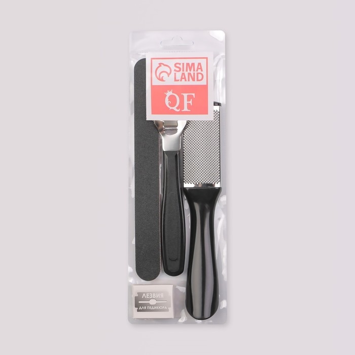 Набор для педикюра, 4 предмета, на блистере, цвет чёрный