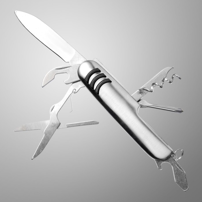 Нож швейцарский 9в1, 18,5см, клинок 75мм/1,3мм, серебристый