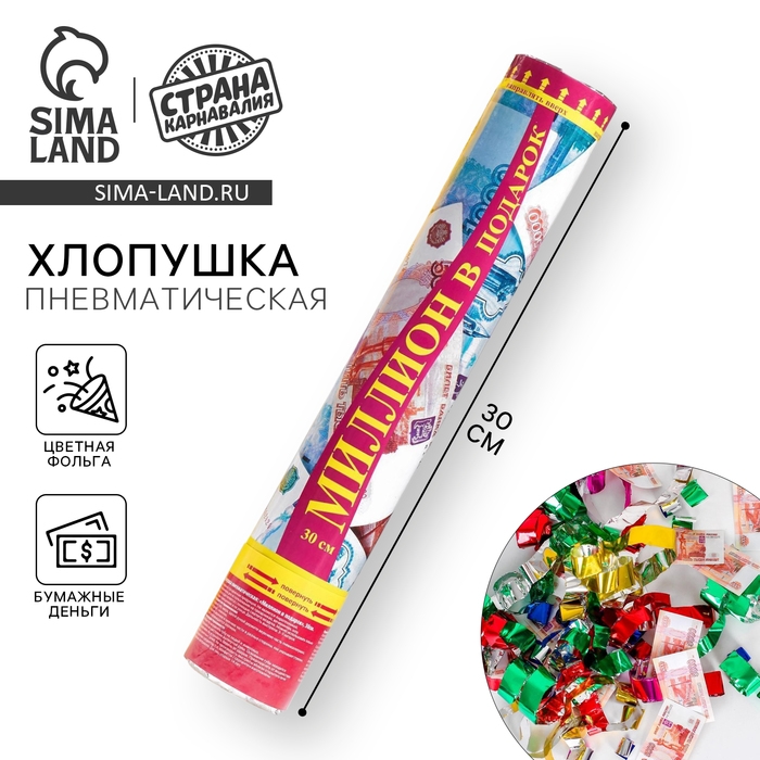 Хлопушка пневматическая «Миллион в подарок», рубли, серпантин, бумага