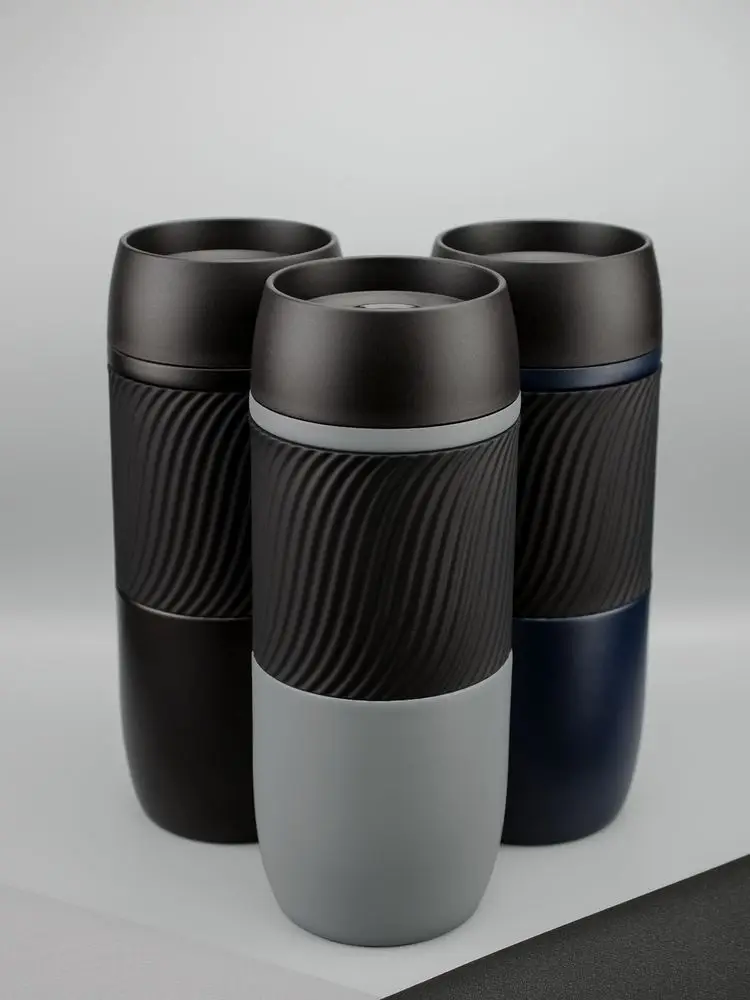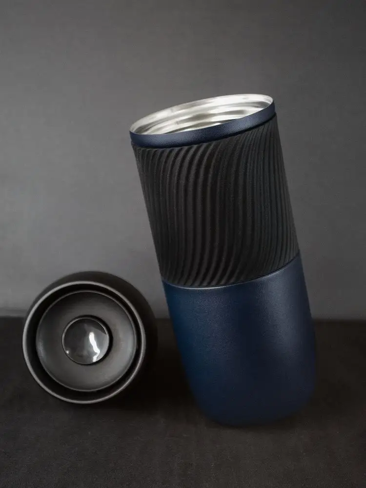 Силиконовая манжета позволяет комфортно держать стакан и в дождь, и в жару, и в холод. С ней стакан не выскользнет из рук, а ладони не замерзнут от соприкосновения с металлом зимой.