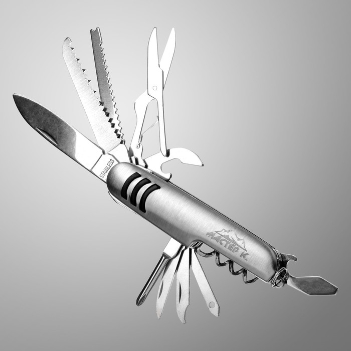 Нож швейцарский "Спасатель" 12в1, серебристый