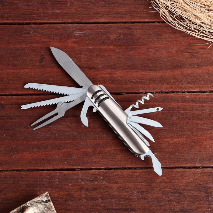 Нож швейцарский "Спасатель" 12в1, серебристый можно охарактеризовать двумя словами – удобный и функциональный. Такой перочинный нож станет для вас незаменимым помощником, например, дома, в походе или на пикнике. Потому что вы будете обладать арсеналом самых необходимых инструментов. С их помощью непростая ситуация разрешится в два счета.