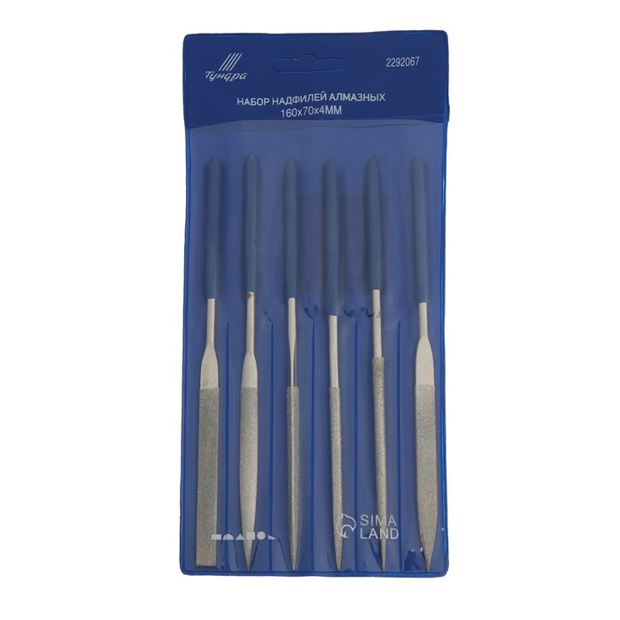 Набор надфилей алмазных ТУНДРА, обрезиненные рукоятки, 70 х 160 х 4 мм, 6 шт.