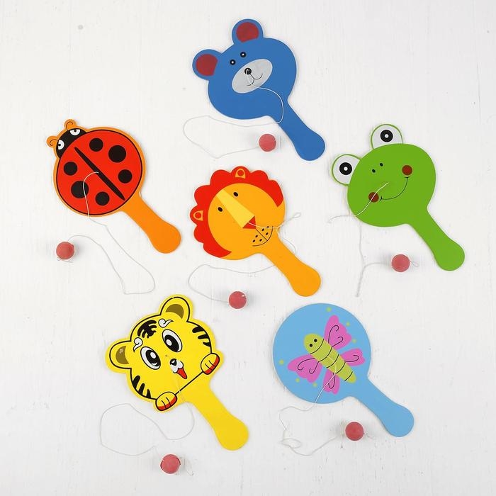 Яркая и забавная игрушка из МДФ материала с животным откроет вашему малышу двери в мир спортивных развлечений. Суть проста: отбивайте отскакивающий от ракетки шарик, который прикреплён к ней с помощью резиночки.