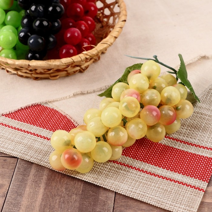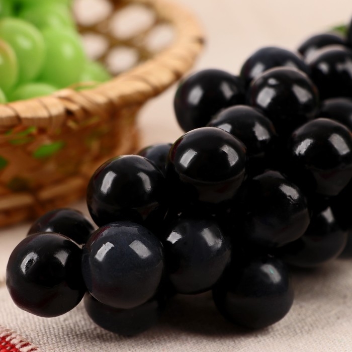 Аппетитные плоды выглядят совсем как настоящие, их так и хочется съесть. Муляж "Виноград матовый" 45 ягод 19 см, микс станет отличным дополнением к фруктово-овощной композиции, которая украсит стол, витрину или любую другую поверхность.