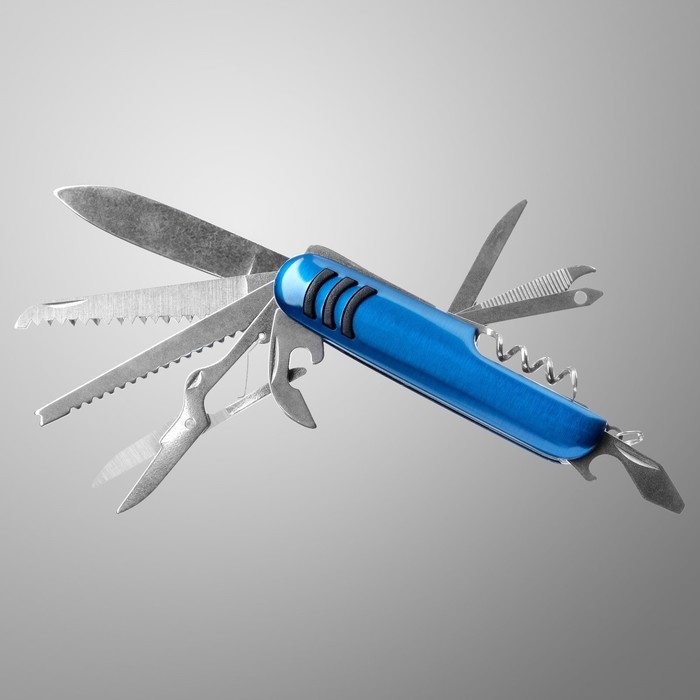 Нож швейцарский "Спасатель" 11в1, синий можно охарактеризовать двумя словами – удобный и функциональный. Такой перочинный нож станет для вас незаменимым помощником, например, дома, в походе или на пикнике. Потому что вы будете обладать арсеналом самых необходимых инструментов. С их помощью непростая ситуация разрешится в два счета.