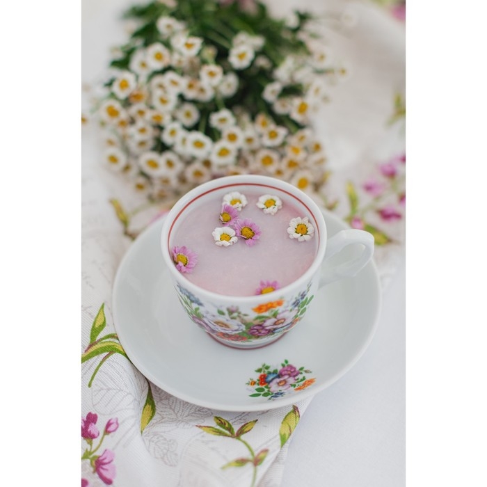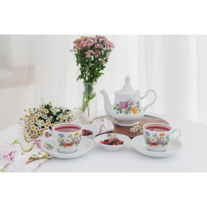 Чайная пара Добрушский завод «Букет цветов», 2 предмета: чашка 250 мл, блюдце d=15 см, фарфор, белая