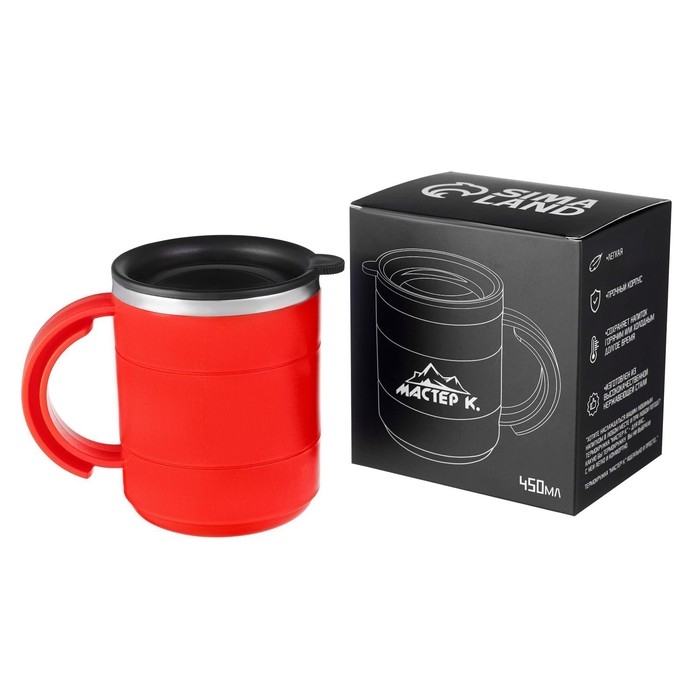 Термокружка, 450 мл, Поход "Мастер К", сохраняет тепло 2 ч, 12.5 х 10.5 см, красная