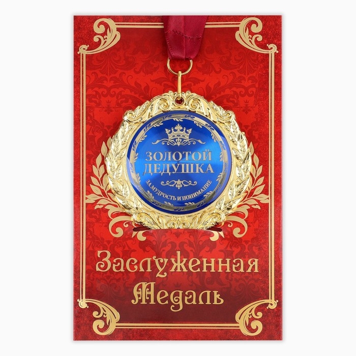 Медаль на открытке «Золотой дедушка», d=7см. Создана формула идеального поздравления: классическая форма и праздничное содержание. Оригинальная медаль – отличная награда для самых достойных представителей своего времени. Эксклюзивный сувенир станет достойным украшением вечера и поможет создать незабываемое поздравление!