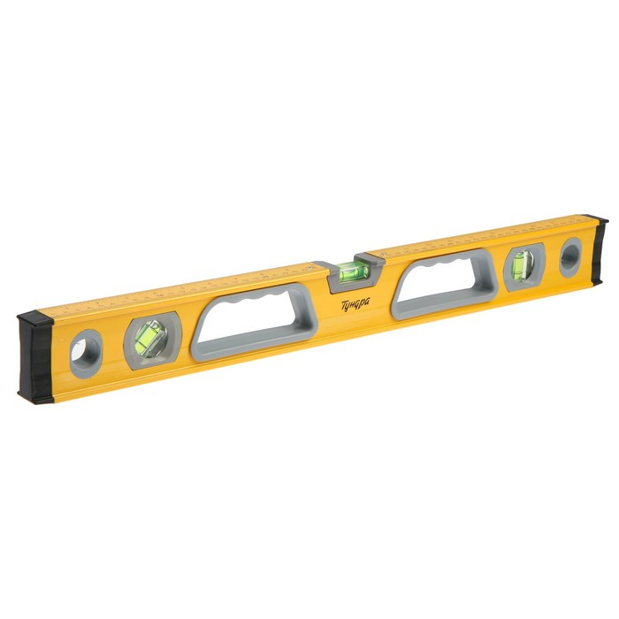 Уровень алюминиевый магнитный ТУНДРА, фрезерованный, эргономичные ручки, 3 глазка, 600 мм