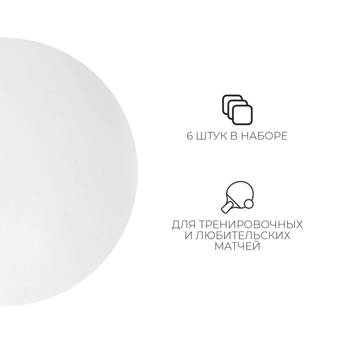 Мяч для настольного тенниса, набор 6 шт., PP, цвет белый